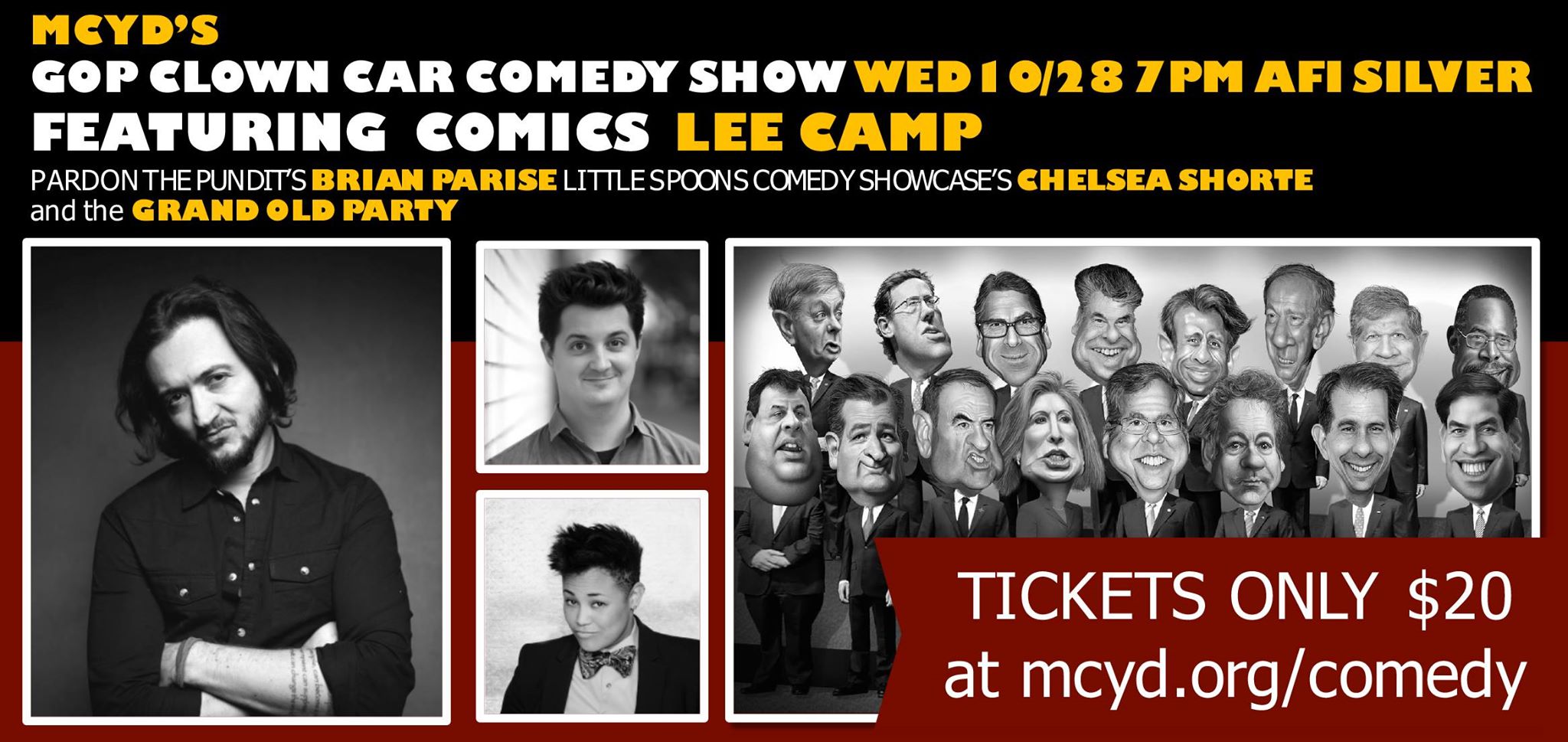 MCYD, with Traffic Circle Productions, presents the GOP Clown Car Comedy Show!